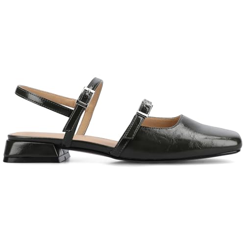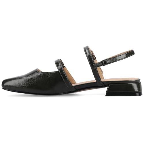 Journee Collection Women's Gretchenn Buckle-Strap Heeled Mary Jane Flats, Olive, 9.5 Wide