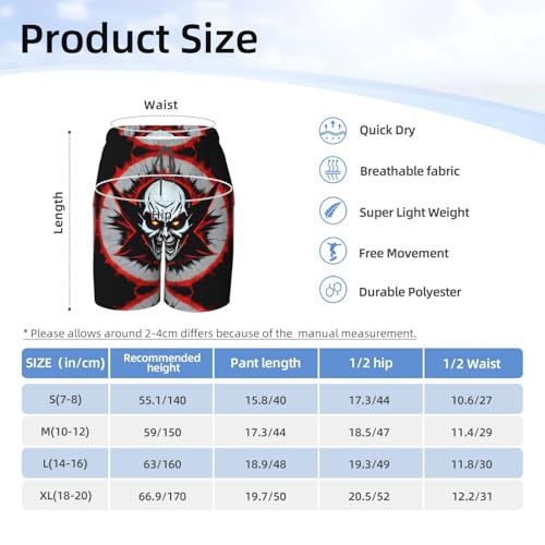 Red and Black Evil Ghost X-Large Youth Beach Pants, tender and Breathable, with Drawstring Waist, Suitable for Sports and Leisure.