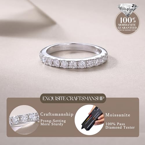 Moissanite Wedding Band Ring, 3mm Wdith Half Eternity Band Moissanite D Color VVS1 Simulated Diamond Rings 925 Sterling Silver Prong Setting, Anniversary and Bridal Gift for Women Wife, entire Size