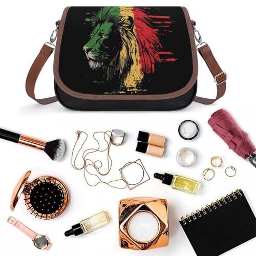 Rasta Lion Rastafari Jamaica Cute Crossbody Purses for Women Leather Shoulder Bag Adjustable Shoulder Strap Handbag