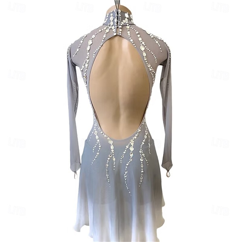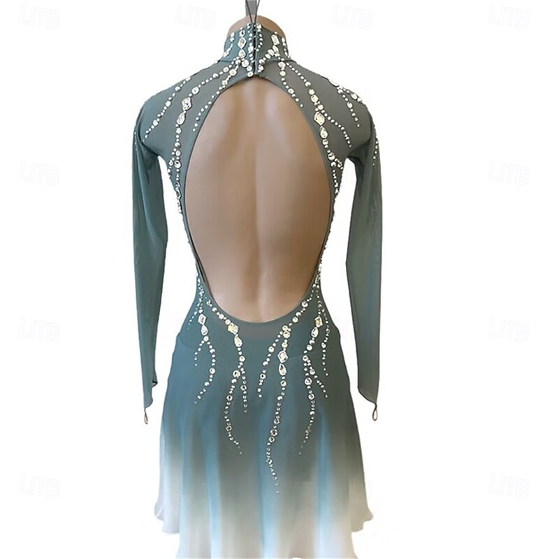 Why Choose Figure Skating Dress Women's Girls' Ice Skating Dress Green Grey Open Back Halo Dyeing Mesh High Elasticity Training Competition Skating Wear traditional Crystal / Rhinestone Long Sleeve Ice Skating?