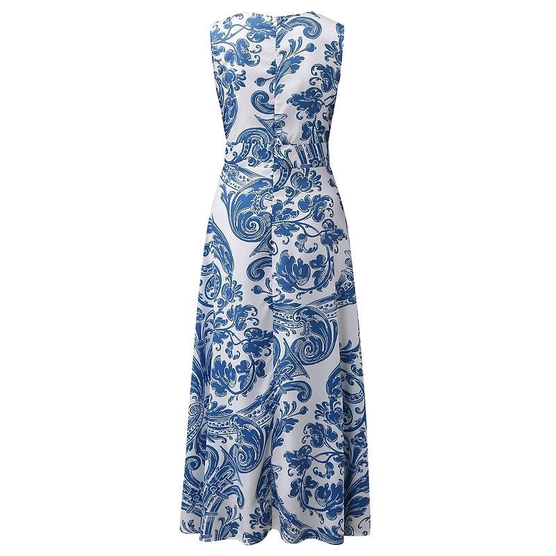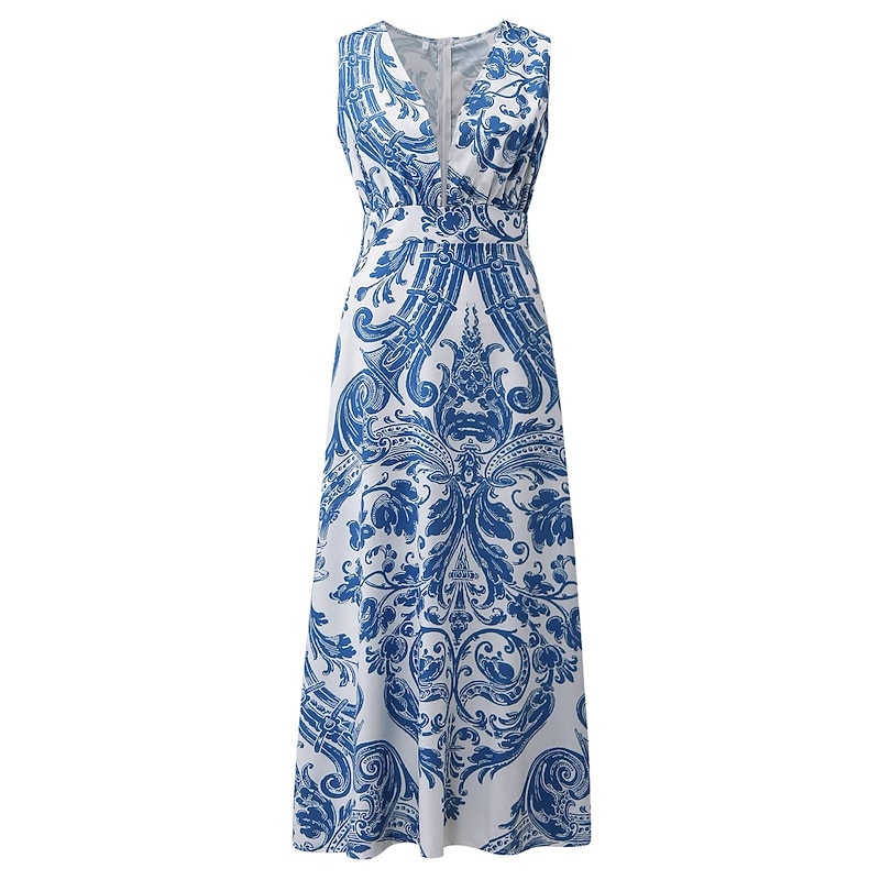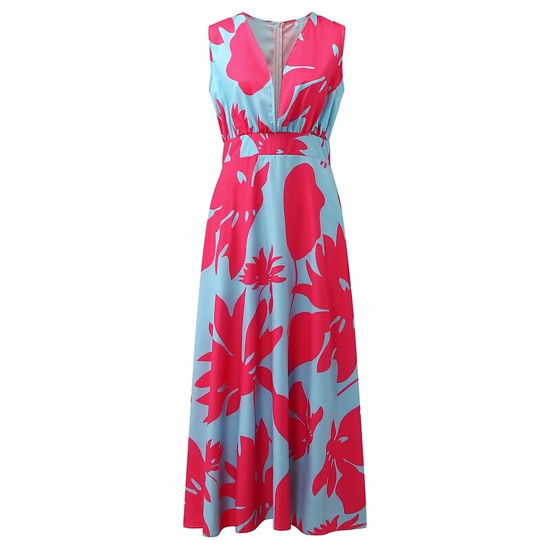 Women's Casual Dress Swing Dress Long Dress Maxi Dress Blue Light Green Fuchsia Sleeveless Floral Print Spring Summer V Neck 2023 S M L XL XXL
