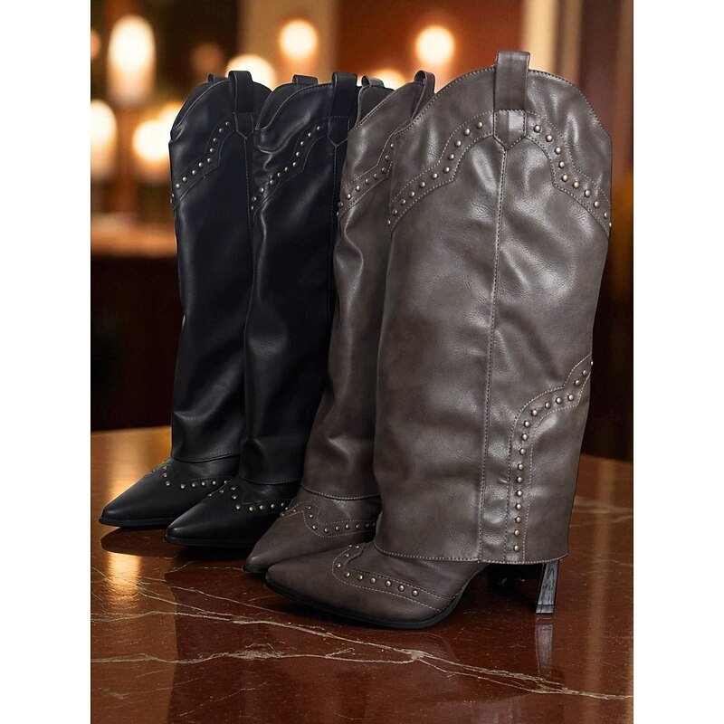 This Women's Slouch Knee High Boots with Studded Detailing Pointed Toe Stiletto Heel Retro Western Style Boots for Urban Fashion Wear combines elegant design with practical functionality. Every detail has been carefully considered to ensure you get the leading possible experience. The finest construction means this product will serve you well for years to come.