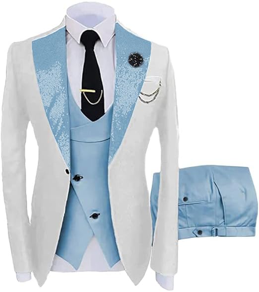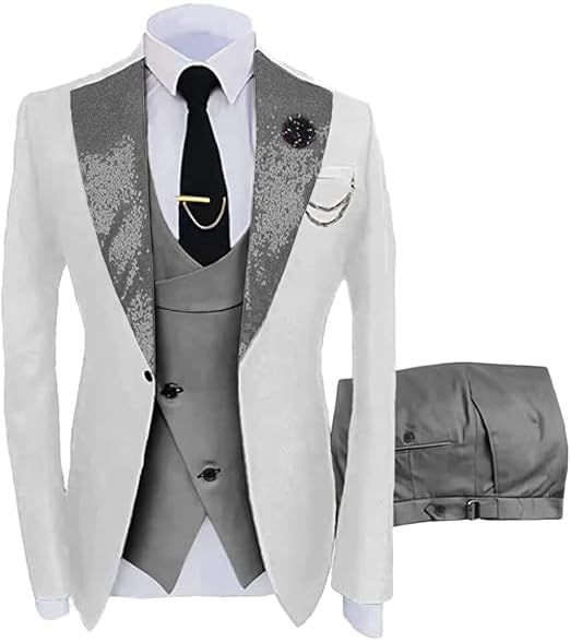 Mens Suit 3 Piece Wedding Tuxedos Sequins Lapel Dress Suits for Men Business Suit